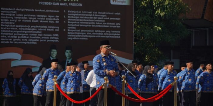 POROSGARUT.ID- Bupati Garut, Abdusy Syakur Amin, memimpin Apel Gabungan di Lingkungan Pemerintahan Kabupaten Garut, Jalan Pembangunan, Kecamatan Tarogong Kidul, Senin (17/11/2025). Dalam amanatnya, Bupati secara khusus menyoroti kinerja ASN di penghujung tahun 2025, mendesak percepatan serapan anggaran dan penguatan kemandirian fiskal daerah.