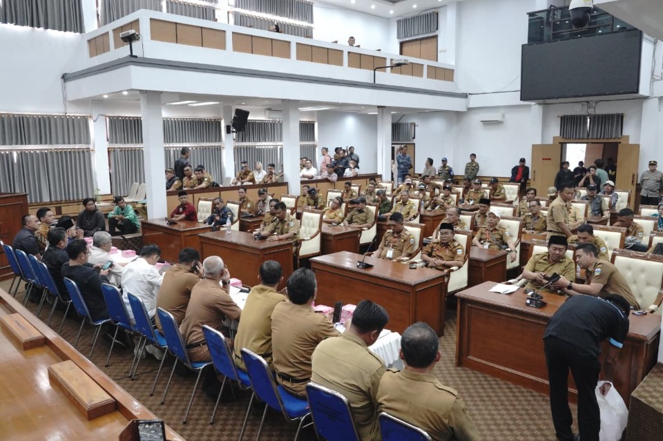 POROSGARUT.ID – Bupati Garut, Abdusy Syakur Amin, bersama Ketua DPRD Kabupaten Garut, Aris Munandar menemui secara langsung Aksi Damai dan Audiensi dari DPC Asosiasi Pemerintahan Desa Seluruh Indonesia (APDESI) Merah Putih Kabupaten Garut, yang dilaksanakan di Ruang Rapat Paripurna DRPD Garut, Jalan Patriot, Kecamatan Tarogong Kidul, Kabupaten Garut, Senin (15/12/2025).