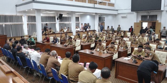 POROSGARUT.ID – Bupati Garut, Abdusy Syakur Amin, bersama Ketua DPRD Kabupaten Garut, Aris Munandar menemui secara langsung Aksi Damai dan Audiensi dari DPC Asosiasi Pemerintahan Desa Seluruh Indonesia (APDESI) Merah Putih Kabupaten Garut, yang dilaksanakan di Ruang Rapat Paripurna DRPD Garut, Jalan Patriot, Kecamatan Tarogong Kidul, Kabupaten Garut, Senin (15/12/2025).
